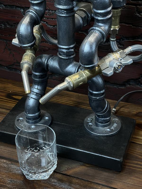 спиной у него есть два огнеопасных снаряда, так что он вдвое опаснее!⚡️Двойной кран-дозатор/светильник крепко прикреплен к подставке, имеет кнопку
