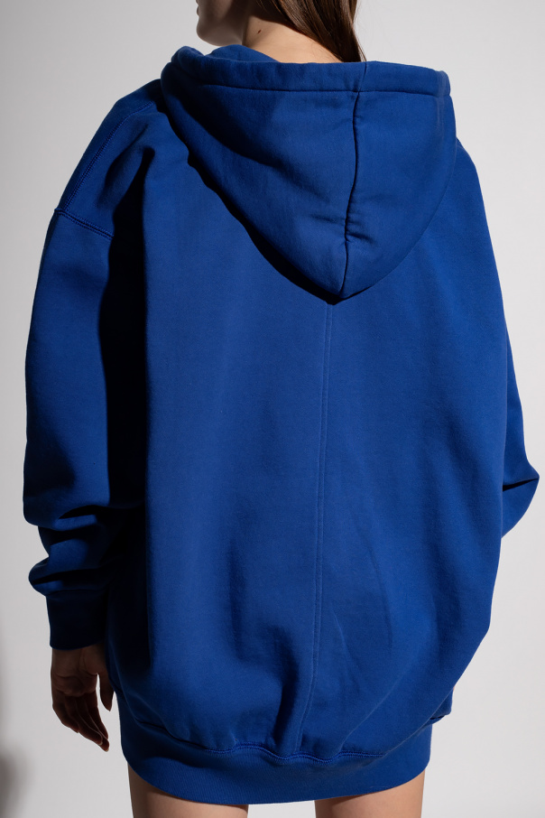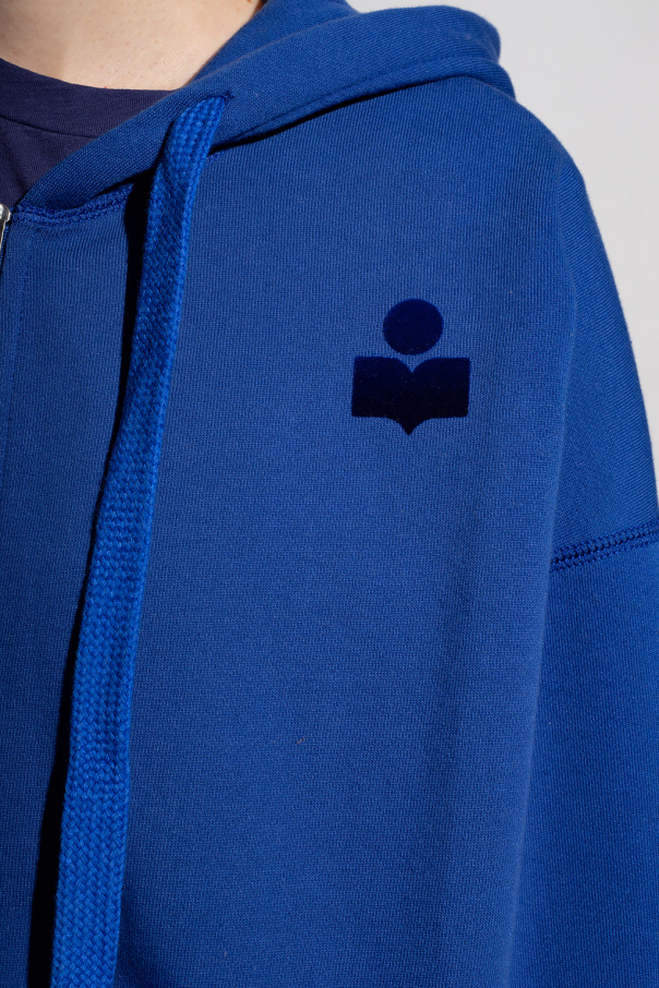 Blue ‘Minila’ oversize hoodie from Isabel Marant Étoile. Made of cotton, this garment features a zip fastening, drawstring hood, velvet logo, two slip pockets and ribbed trims at the hem and cuffs.