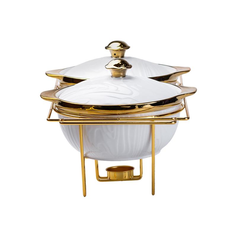 изящным покрытием "золотой мрамор", мармитница устойчива к царапинам, трещинам
