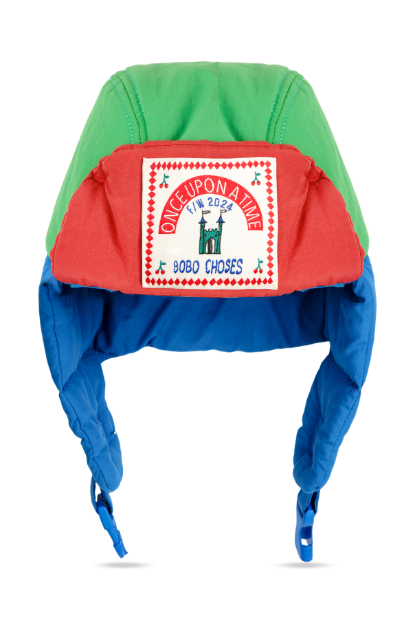 Introducing the exquisite Bobo Choses Logo Hat, an enchanting accessory meticulously designed for infants aged 0-36 months. This vibrant hat epitomizes the playful and imaginative essence of Bobo Choses, a renowned Spanish brand celebrated for its unique and heartwarming creations for children. Crafted with utmost care, the hat features a distinctive earflap design with a secure chin strap fastened by a blue buckle, ensuring a snug fit for your little one. The interior is luxuriously lined with soft blue fabric, likely fleece, providing exceptional warmth and comfort. The hat boasts a delightful multicolored pattern, with green adorning the top, red gracing the center above the forehead, and blue accentuating the lower part and earflaps. A charming rectangular patch with a white background and red embellishments adorns the front, displaying the phrase “ONCE UPON A TIME F/W 2024 BOBO CHOSES” alongside a whimsical castle motif. Made from child-friendly materials, this hat is designed to be both water and wind-resistant, making it an ideal choice for the cooler seasons. It belongs to the Fall/Winter 2024 collection, embodying the brand\'s commitment to quality and creativity. Why Choose This Product? Exceptional Comfort: Soft fleece lining ensures warmth and coziness. Adjustable Fit: Chin strap with a blue buckle for a secure and custom fit. Playful Design: Multicolored pattern with a unique logo patch, perfect for imaginative children. Durable and Protective: Water and wind-resistant materials ideal for colder weather. Exclusive Collection: Part of the distinguished Fall/Winter 2024 collection.