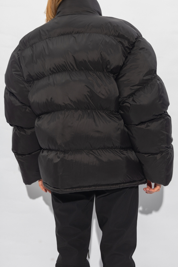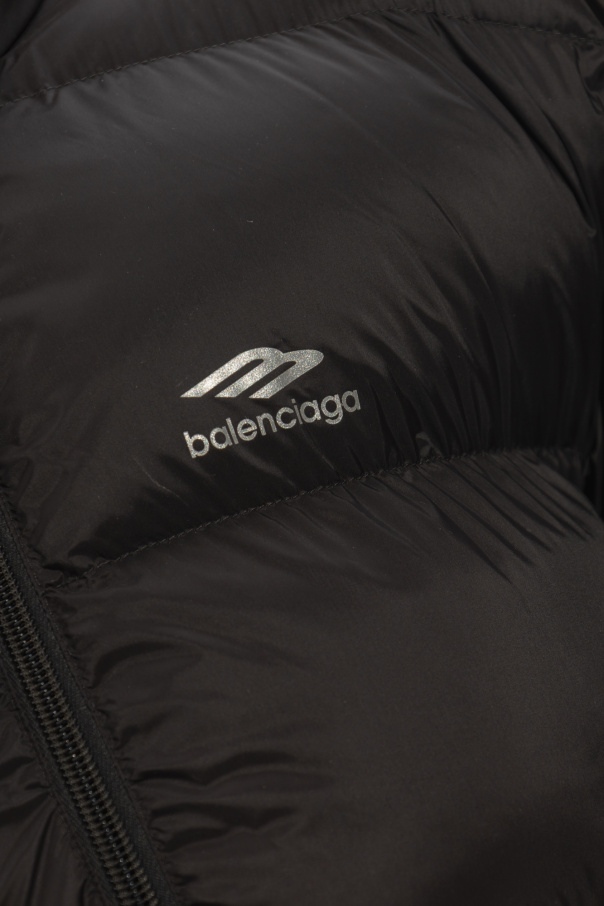 Black quilted jacket from Balenciaga, the ‘Skiwear’ collection. Crafted from fabric with a water-repellent finish, this design features a zip fastening, reflective logo, stand up collar, two zip pockets, long sleeves and a drawstring hem.