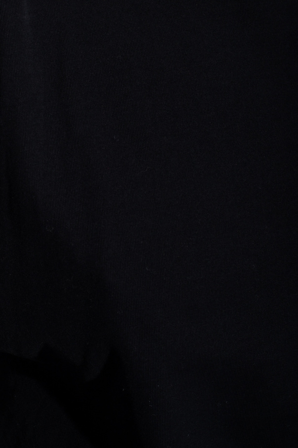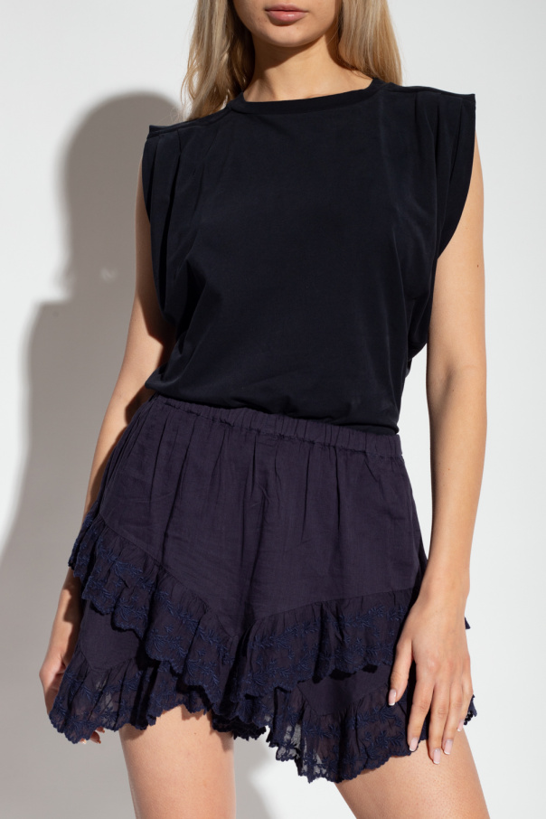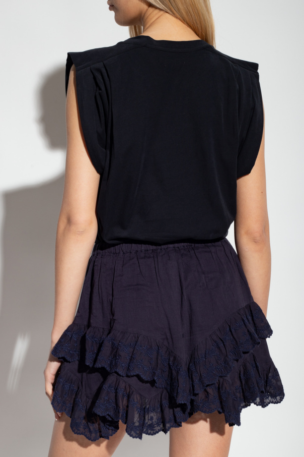 Black ‘Zutti’ top from Isabel Marant. Made of cotton, this draped garment has a round neck.