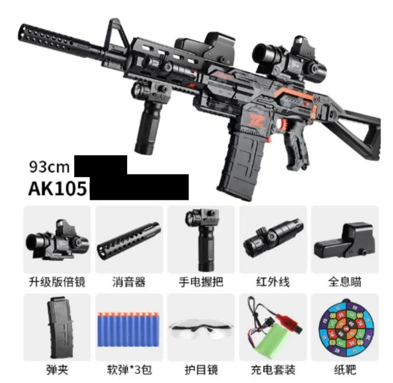 Игрушечный пластиковый электрический автомат Калашникова АК105 стреляет