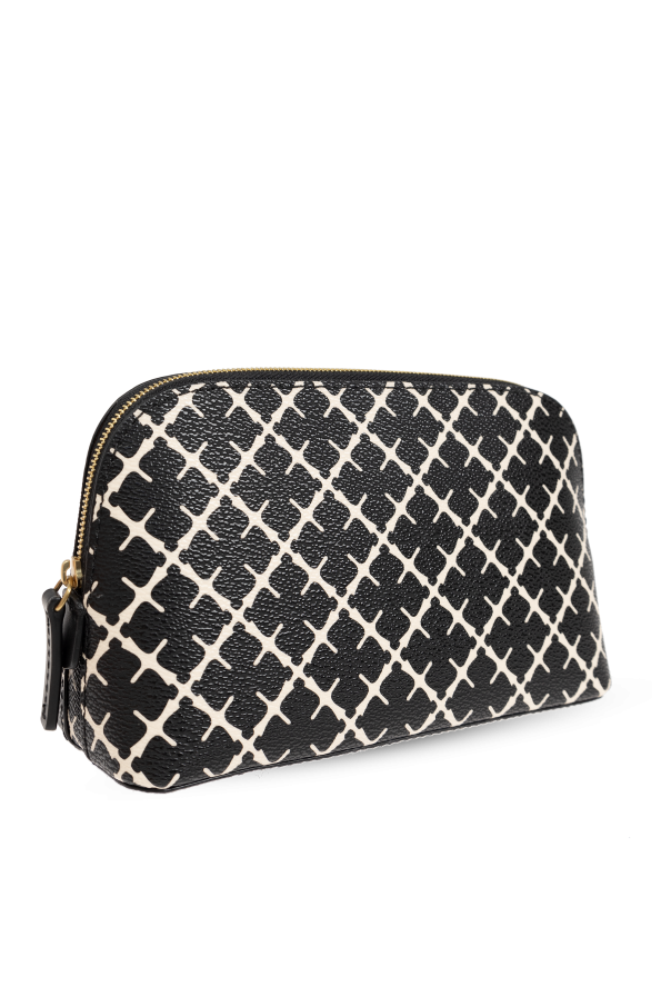 Introducing the ‘Bae Small’ Cosmetic Case from the exclusive collection by By Malene Birger. This exquisite accessory epitomizes the perfect blend of elegance and functionality, designed for women who value style and superior craftsmanship. The cosmetic case features a rectangular shape with gently rounded top corners, covered in a distinctive pattern of white intersecting lines on a black background, forming symmetrical, grid-like shapes. The exterior is crafted from high-quality leather or leather-like material with a textured finish, exuding sophistication and durability. Enhancing its luxurious appeal, the case is equipped with a golden zipper closure, which seamlessly complements the chic design. Inside, the cosmetic case is lined with a rich brown fabric, providing a refined contrast to the exterior. The interior also includes labels with product information, ensuring authenticity and attention to detail. Why Choose This Product? Distinctive Design: Recognizable pattern that stands out. High-Quality Material: Durable and elegant textured leather or leather-like surface. Luxurious Finish: Golden zipper adds a touch of elegance. Functional Interior: Spacious, brown-lined compartment for all your essentials. Exquisite Craftsmanship: Meticulous detailing reflects superior quality.