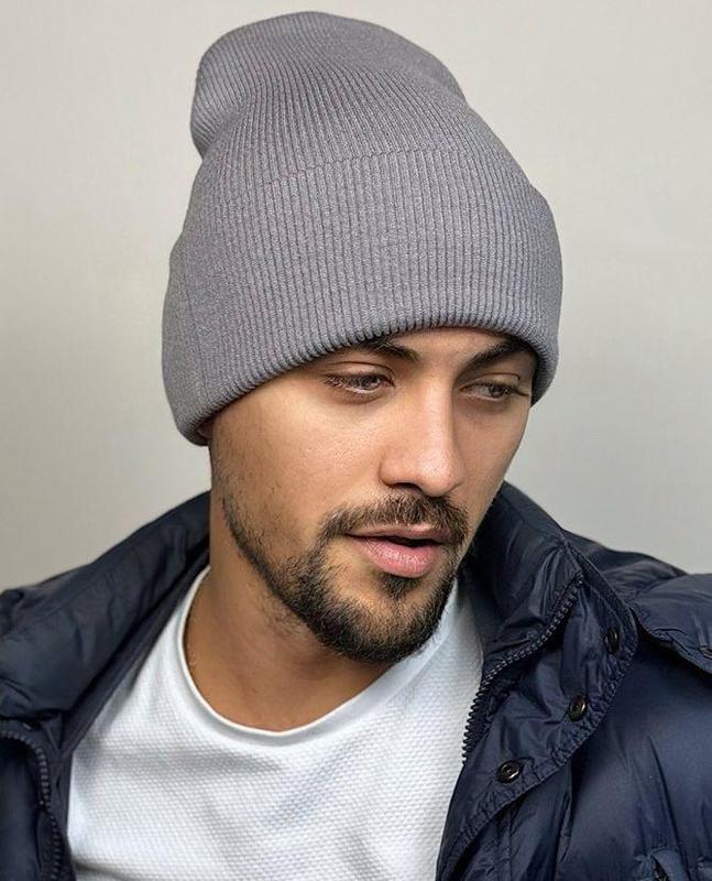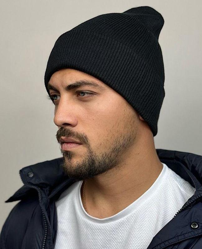 Мужская удлиненная шапка с отворотом в рубчик - это уютный и стильный