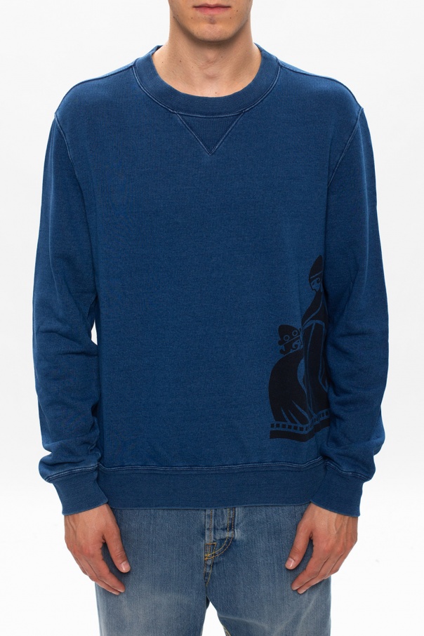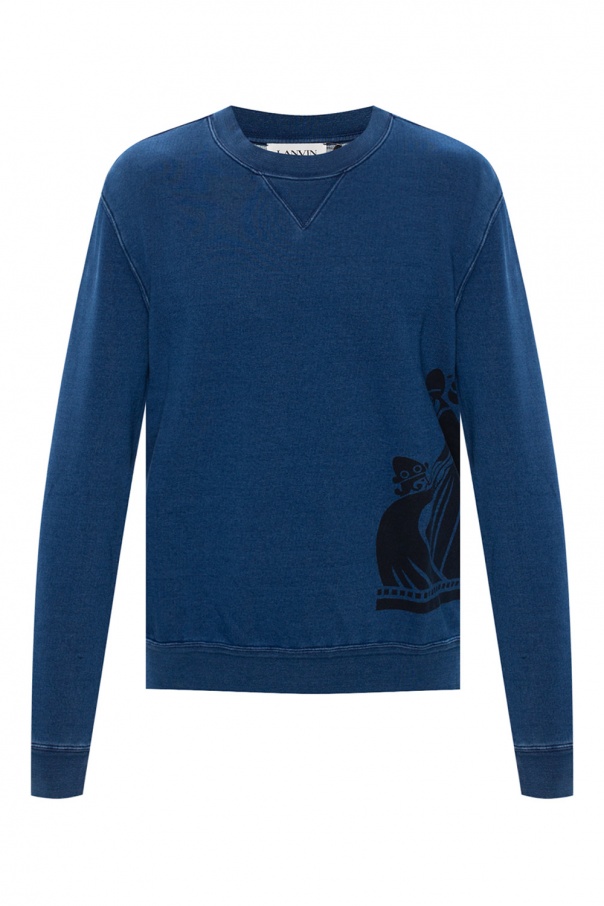 Navy sweatshirt from Lanvin. This crewneck design comes enriched with a black logo print and ribbed trims.