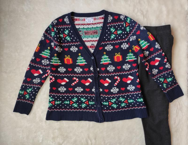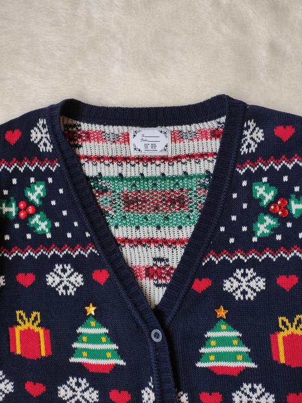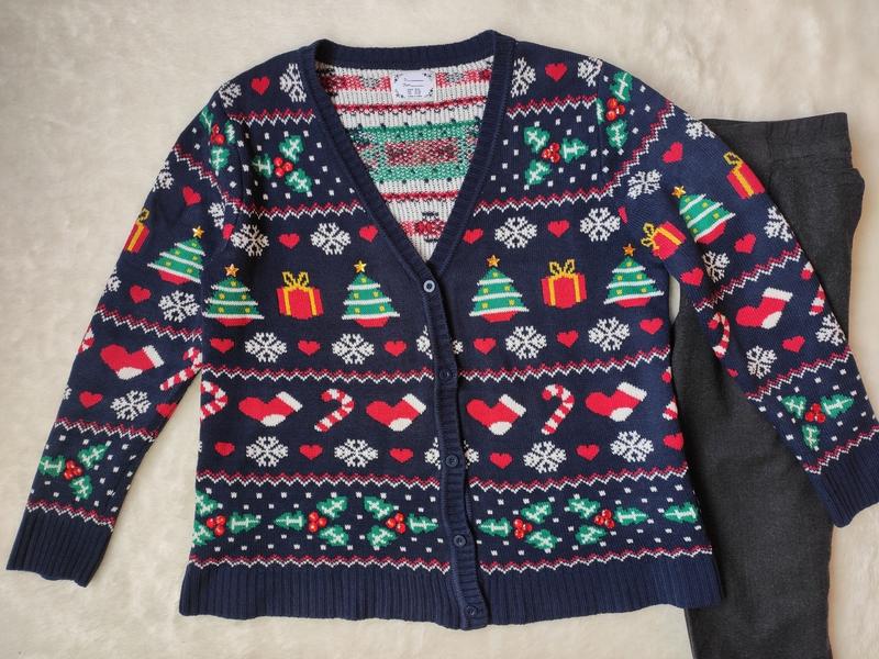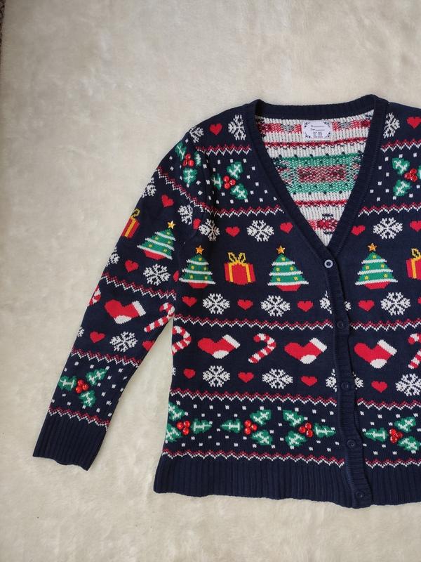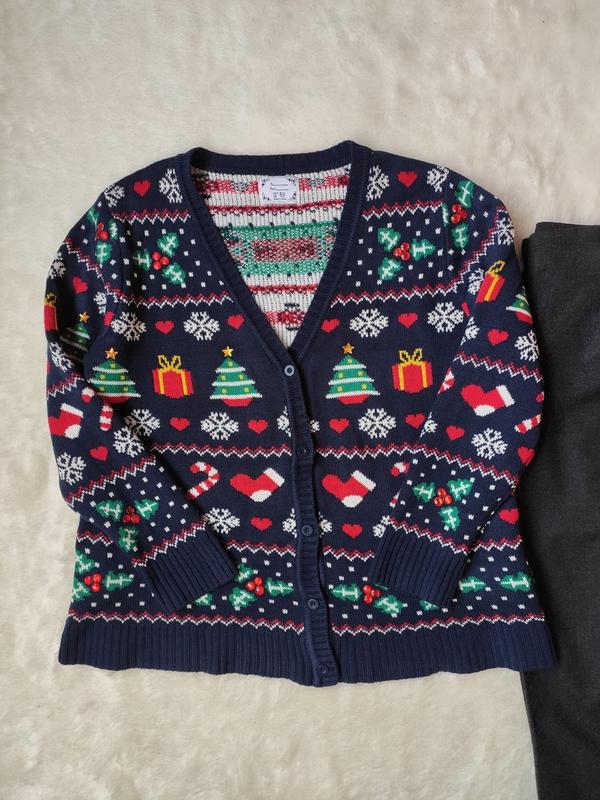Синий разноцветный новогодний свитер с пуговицами кардиган кофта батал большого размера от АТМ
