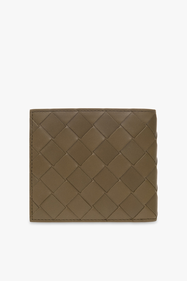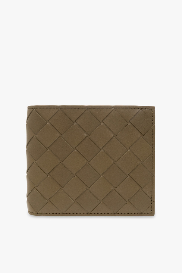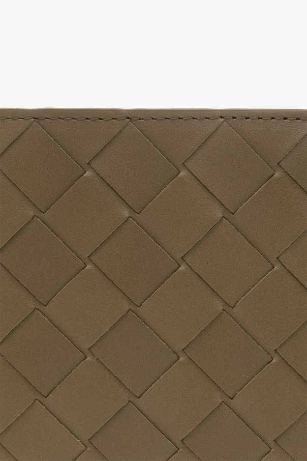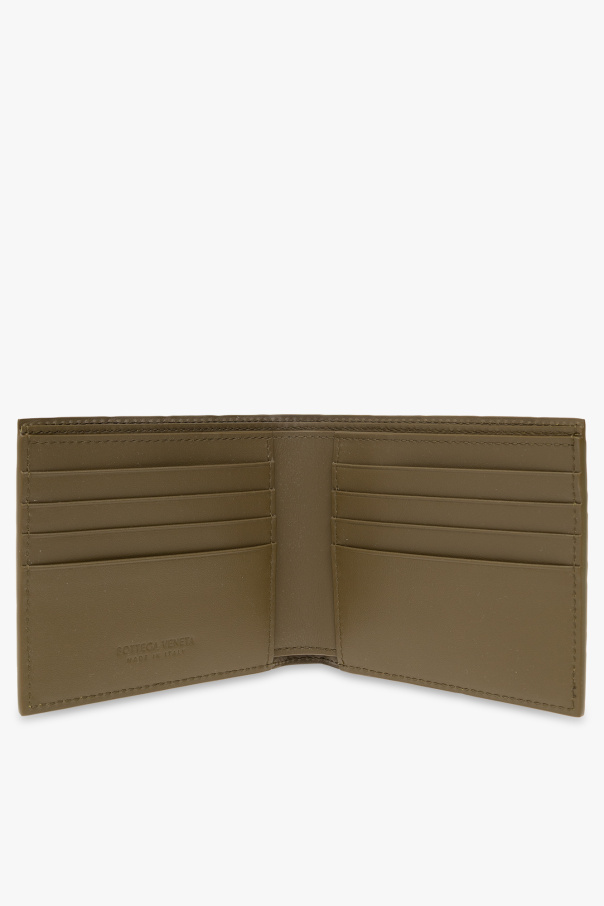 Dark green wallet from Bottega Veneta. Crafted from leather with the brand\'s signature weave, this design features silver-tone metal hardware and eight card slots, one bill gusset and two slip pockets inside.