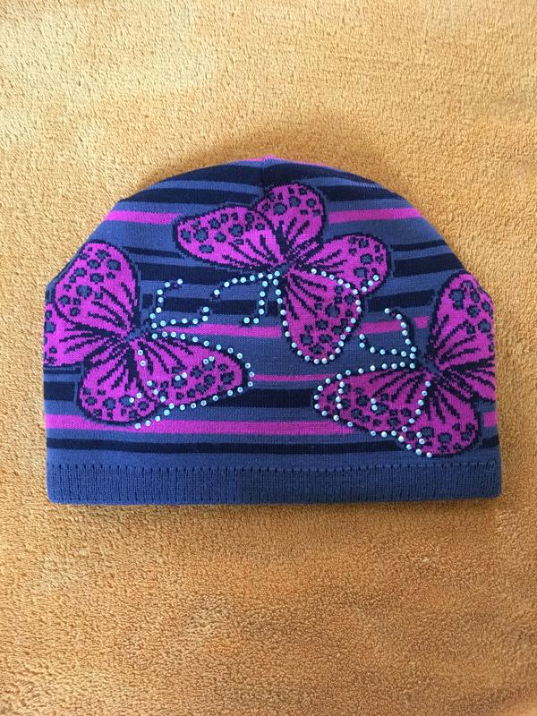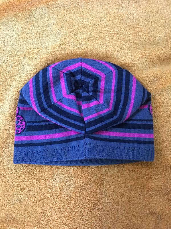 Демисезонная, яркая шапка на девочку 9-12 лет. На ушках флисовая полоска.