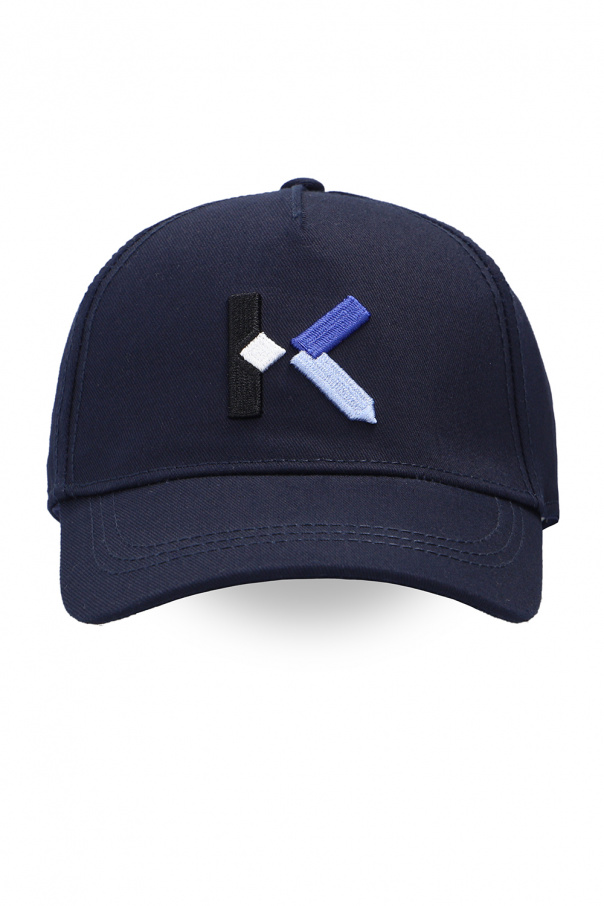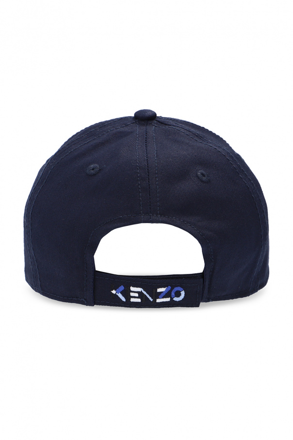 Navy baseball cap from Kenzo Kids. Made of cotton, this design features a velcro strap at the back and monogram embroidery in white, blue and navy.