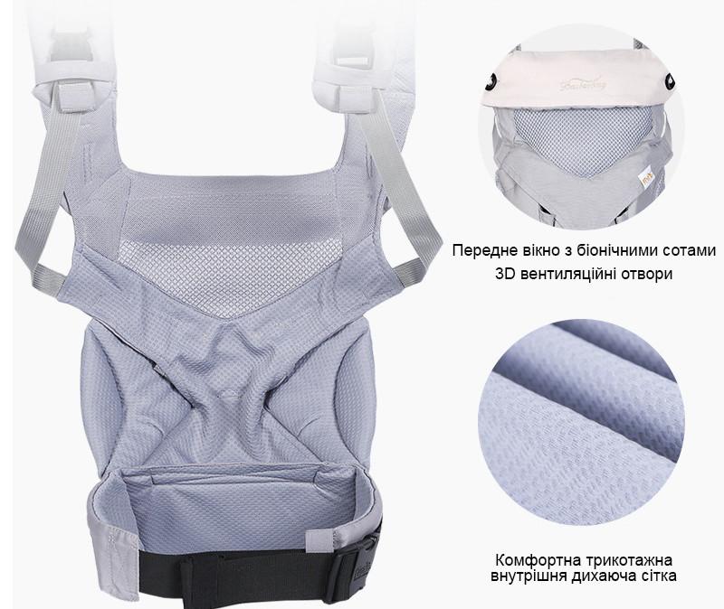 все необходимые положения для переноски, а также продуманную вентиляцию.Подходит для малышей от 3 месяцев до 4 лет.