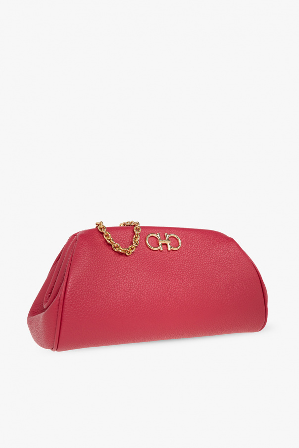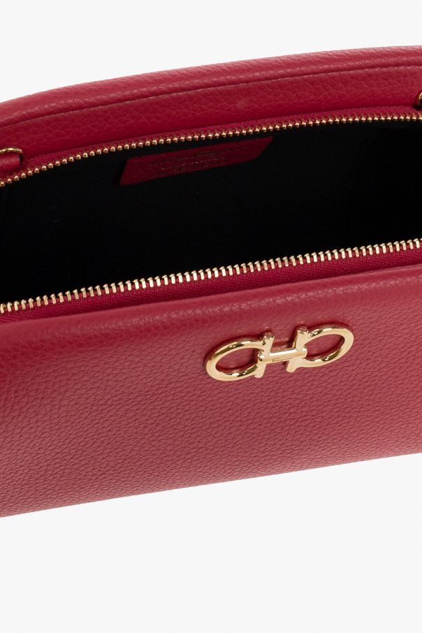 Dark pink shoulder bag from Salvatore Ferragamo. Crafted from calf leather, this design secures with a zipper and showcases a logo application, a shoulder strap, gold-tone metal hardware and one internal compartment.