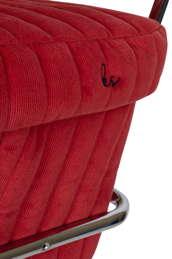 Red and beige doll stroller in vintage style from Konges Slojd. The frame is made of silver-tone metal with spongy soft handles. It is equipped with four large wheels made in EVA material for extra stability. The quilted printed fabric and a mattress made in 100% organic cotton. Comes with a softly cushioned storage basket under the lift. This item comes fully assembled and is easy to fold and store.
