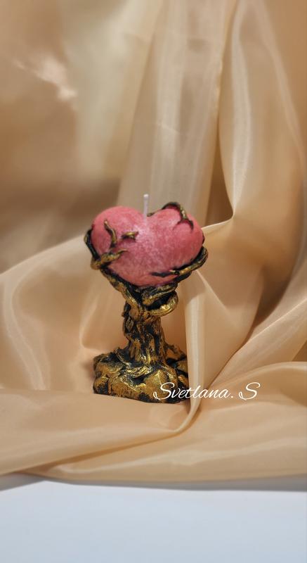 Свеча дерево с сердцем ❤️вес 160г. 13см аромат дубовый мох и янтарь.