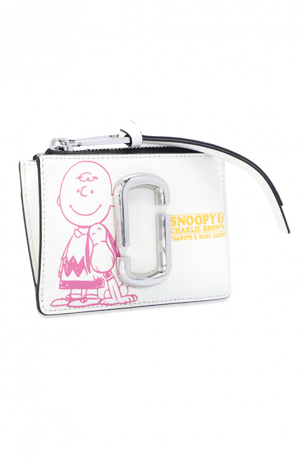 White wallet from Marc Jacobs (The) x Peanuts. Made of cow leather and decorated with a colourful graphic motif with the brand\'s logo, this item features a zip fastening, four card slots and one slip pocket on the back, silver-tone metal hardware and one internal zipped pocket.