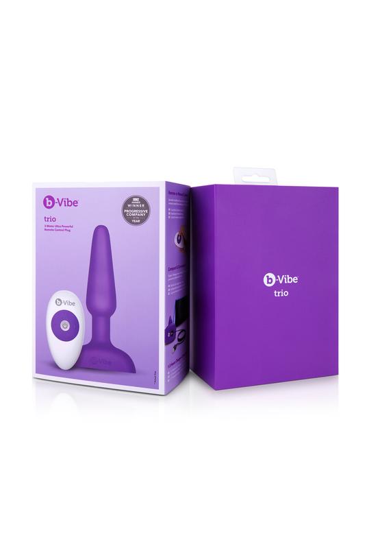 Анальная пробка с вибрацией и пультом, три мотора B-Vibe - Trio, фиолетовая