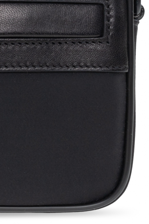Black ‘Camp Small’ shoulder bag from Saint Laurent. Trimmed with leather, this design fastens via a zip and showcases an embossed silver-tone logo on the front, an external zip pocket, an adjustable shoulder strap, silver-tone metal hardware and one internal compartment with one slip pocket and two card slots.