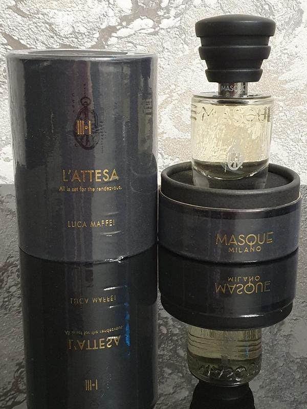Парфюмированная вода Masque Milano L`Attesa относится к древесной, мускусной и цветочной группам ароматов. Ее многогранное звучание начинается брызгами шампанского, цитрусовой свежестью бергамота и нежной сладостью нероли. В сердце ирис, тубероза и иланг-иланг соединились в великолепном букете. Завершают парфюмерную композицию дубовый мох, кожа и сандал.