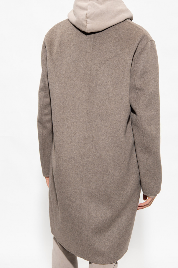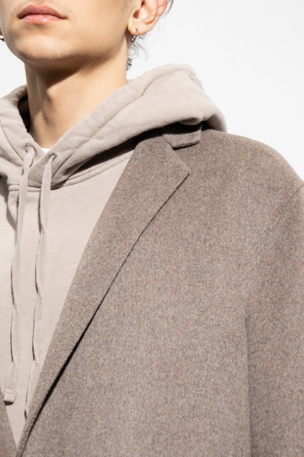 Greyish beige ‘Hanson’ coat from AllSaints. Crafted from a recycled wool blend, this style features button fastenings, notch lapels, two frontal pockets and long sleeves.