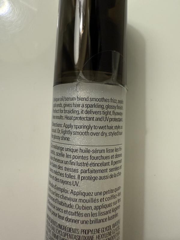 - Придает волосам сияющий блеск, запечатывает кутикулу и временно устраняет секущиеся кончики