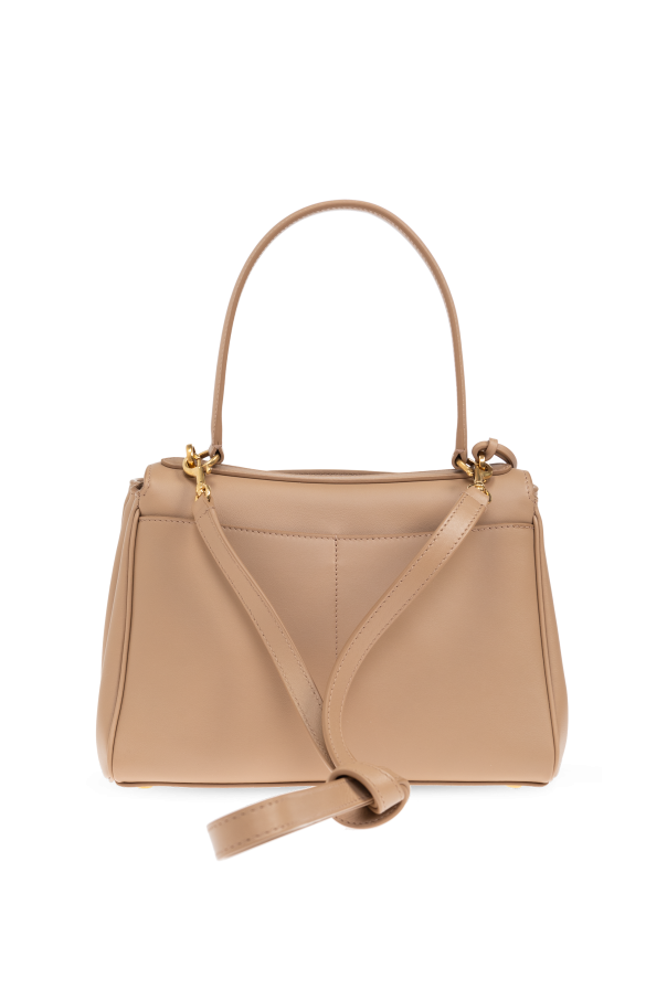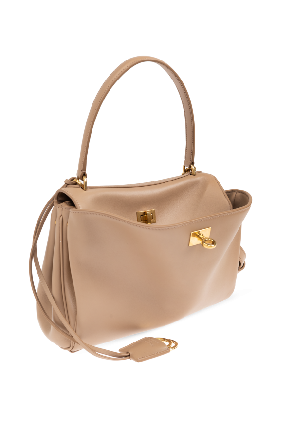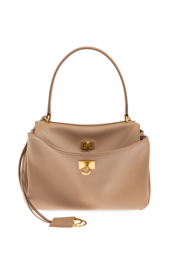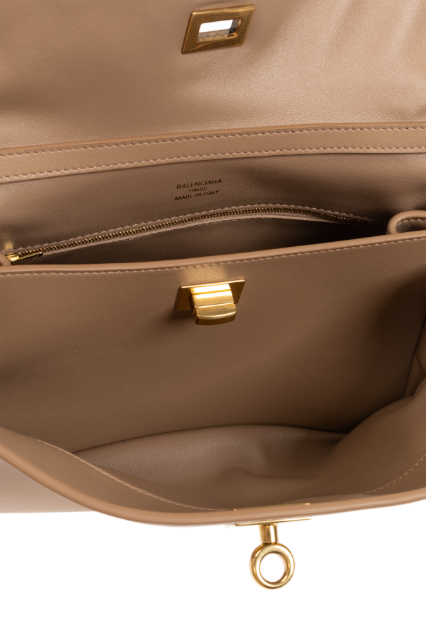 Presenting the Balenciaga Shoulder Bag, an exquisite piece from the exclusive collection. With its classic rectangular shape and rounded edges, this bag embodies minimalist elegance. Crafted from the finest calfskin leather, it exudes a luxurious appearance. The sophisticated design is accentuated by gold metal elements, including a circular clasp and handles, providing an elegant touch. The bag\'s beige hue offers versatility, seamlessly complementing various styles. Featuring a spacious interior with two compartments and a zippered pocket, it accommodates all essentials with ease. A long adjustable strap at the back adds functionality, allowing for a personalized fit. This creation perfectly blends elegance with utility, making it ideal for any occasion. Why Buy This Product? Designed by the esteemed Balenciaga, a name synonymous with haute couture. Crafted from high-quality calfskin leather for a luxurious feel. Features elegant gold metal detailing for added sophistication. Offers a spacious interior with dual compartments for ultimate functionality. Versatile beige color that complements various outfits.