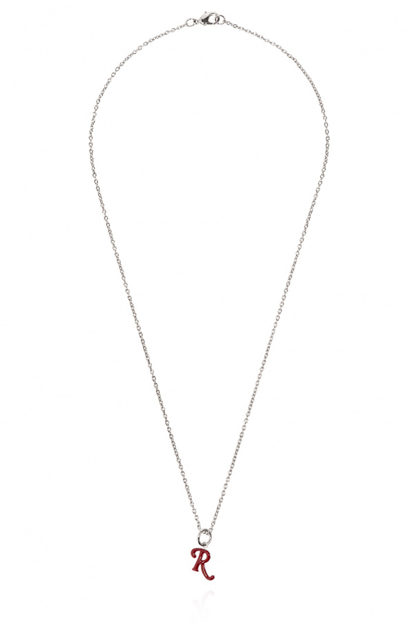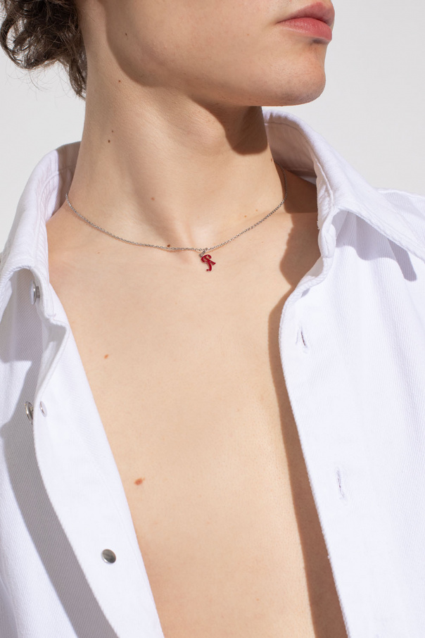 Silver-tone necklace from Raf Simons. Made of brass, this item features a lobster clasp and red logo charm.
