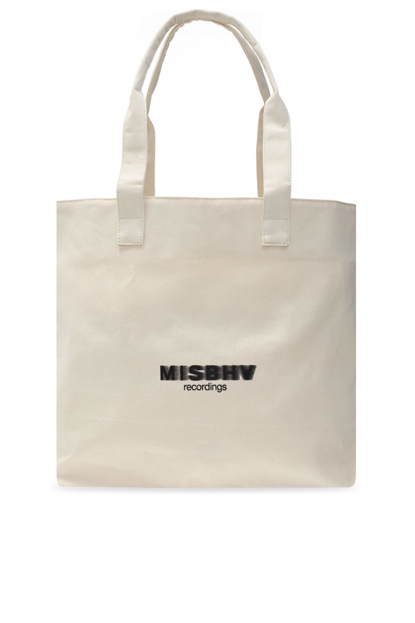Cream ‘Recordings’ shopper bag from MISBHV. Boasting a black and grey logo print, this cotton-crafted design employs two half-round handles and one internal compartment.