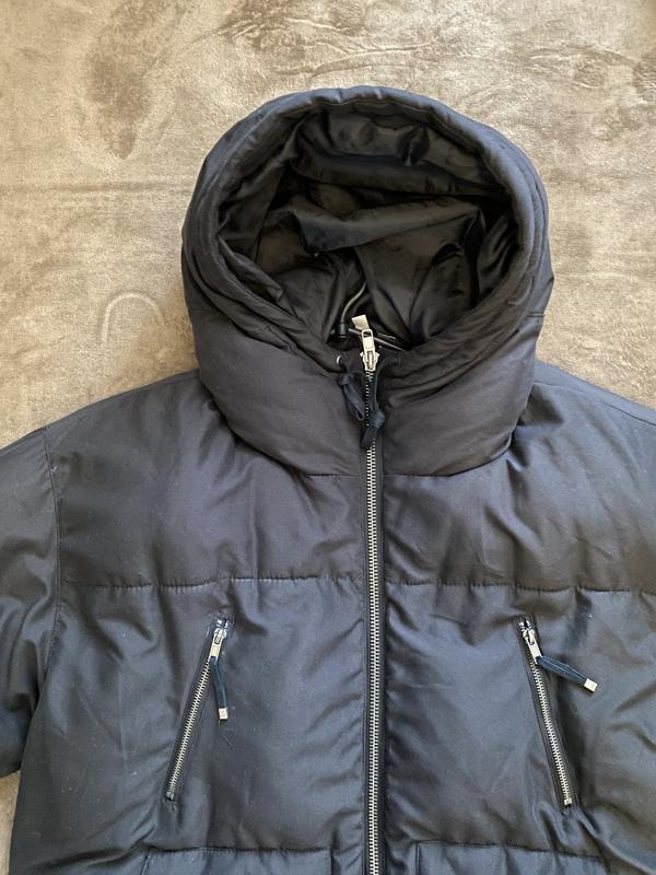 Утепленная парка из ткани. Утепленный капюшон на подкладке с кулиской, а также воротник стойка и молния спереди. Карманы для рук на молнии и большие накладные карманы спереди. Рельефная трикотажная резинка