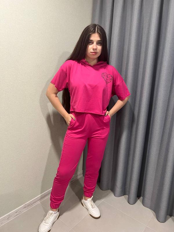 Спорт штаны джоггеры с высокой посадкой, кофточка укороченная модель кроп топ с капюшоном. В 9 стильных оттенках цветов и принтом, которое зацепит в самое сердечко ❤️🔥💎