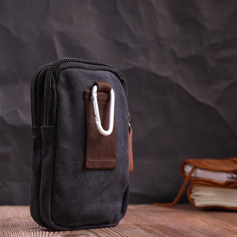Сумка мужская на пояс с карабином барсетка из текстиля Vintage 22223 Черный