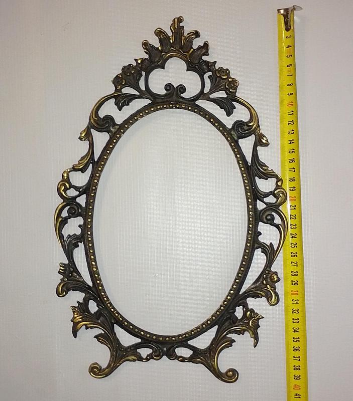 Винтажная бронзовая рамка. Размер 40см х 25см. Вес чуть более 1 кг. Сверху на оборотной стороне имеется ушко для колечка, что бы вешать на стену. В раме была шелкография.