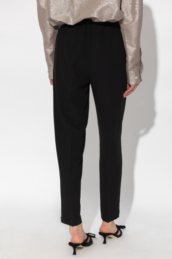 Black ‘Hallie’ pleat-front trousers from Samsoe Samsoe. This pair features an elastic waistband, zip, hook and button closure, two slip pockets and slightly tapered legs.