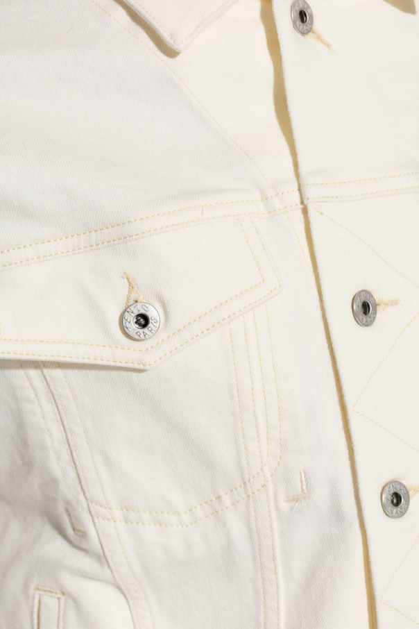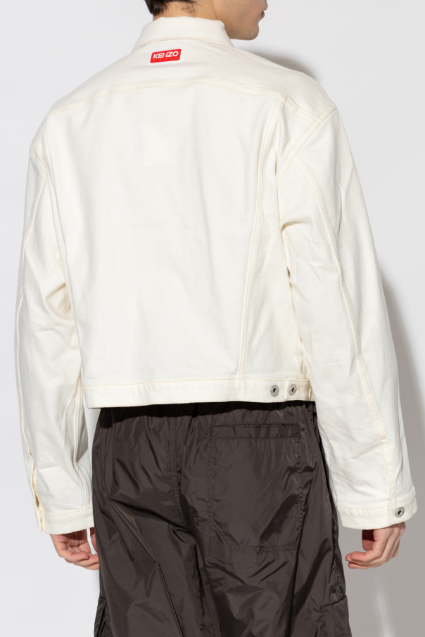 White denim jacket from Kenzo. Fastened with buttons, this garment features a red, white and green logo patch, two buttoned flap pockets, two slip pockets and long sleeves with buttoned cuffs.