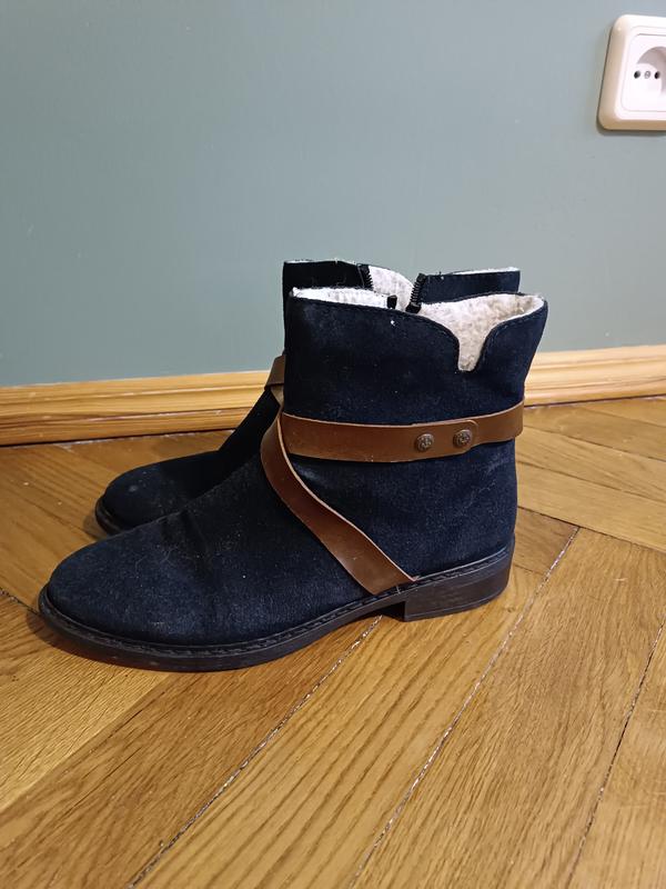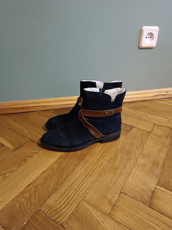 Из натуральной замши, в середине утеплены овчиной. В хорошем состоянии, без дефектов, овчина не сбита. Размер 39.