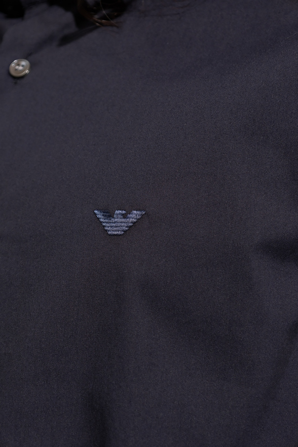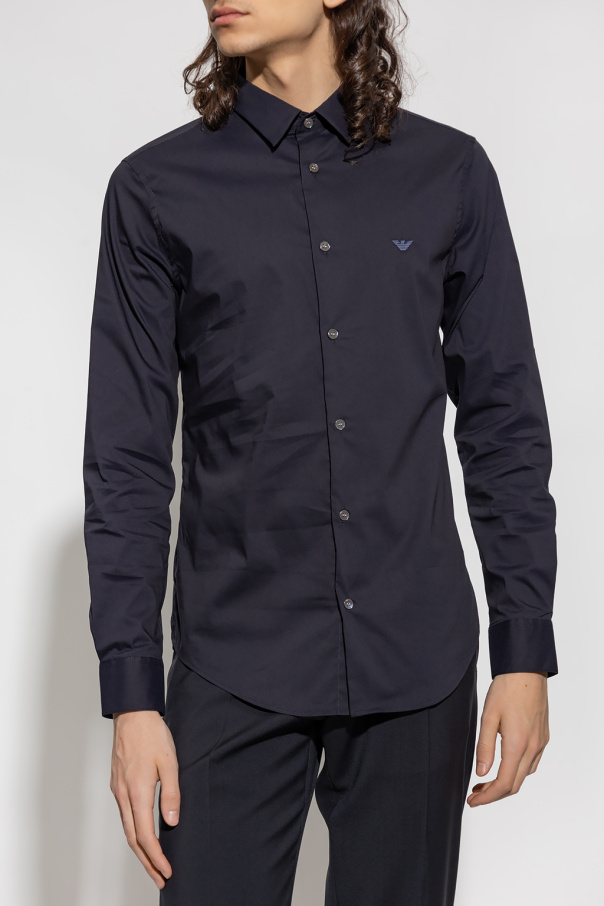 Navy shirt from Emporio Armani. Crafted from a cotton blend, this garment features button fastenings, logo embroidery and long sleeves with buttoned cuffs.