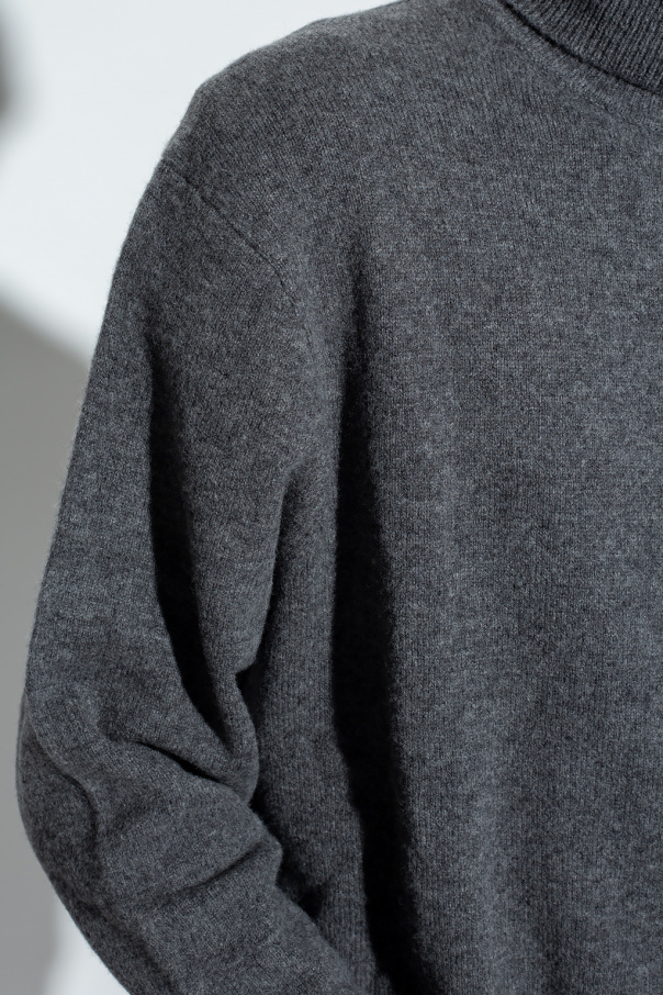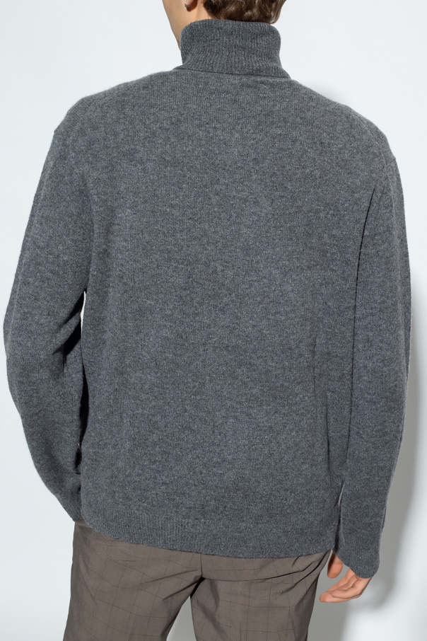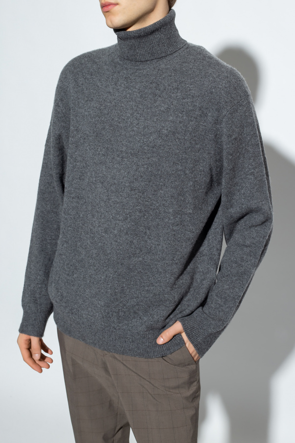 Grey turtleneck sweater from Samsoe Samsoe. Made of wool, this style features a relaxed fitting silhouette, a snug collar and ribbed hems.