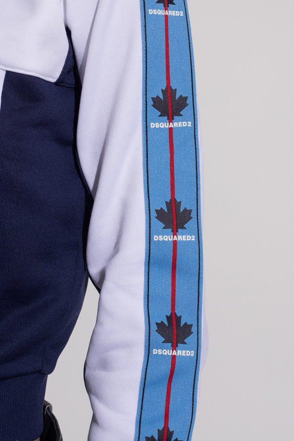 White, navy blue and blue sweatshirt with a standing collar from Dsquared2. Distinguished by branded tapes on the sleeves, this style features a two-way zip fastening, two zip pockets, red logo detailing and elasticized edges.