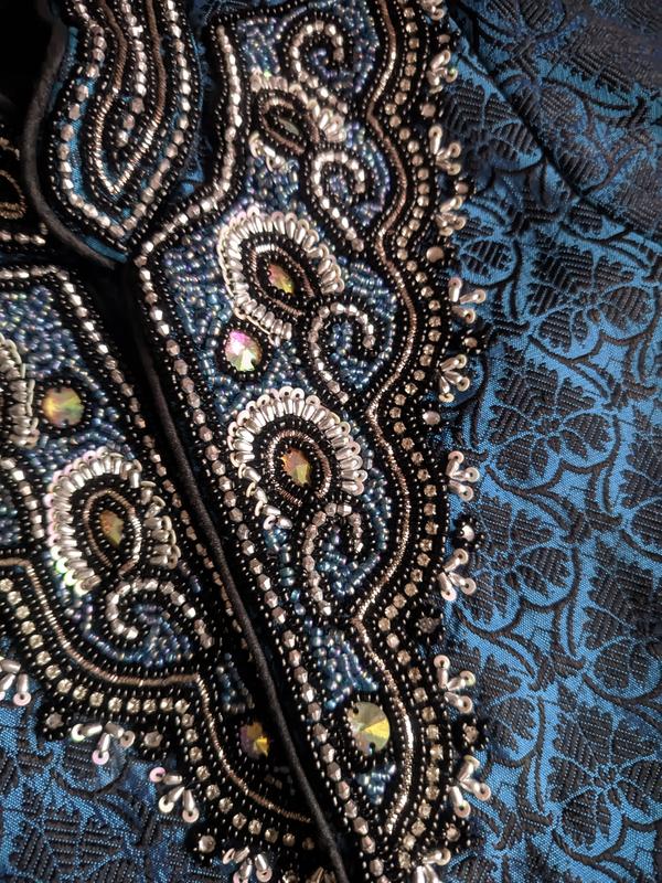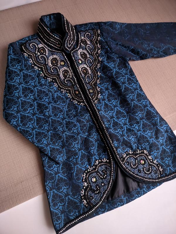 Піджак із гарної набивної тафти на підкладці з вишивкою.