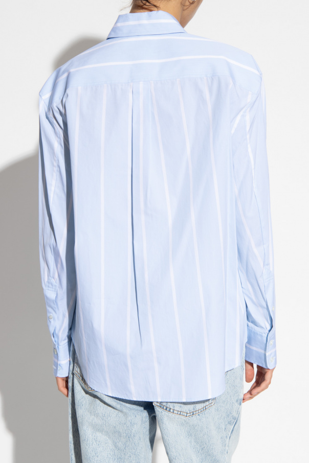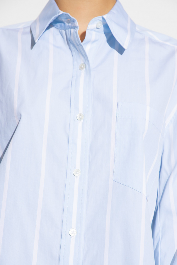 Blue and white shirt from Alexander Wang. Crafted from cotton, this style features a stripe pattern, a slip chest pocket, button fastenings, a white and black logo patch and long sleeves with button cuffs.
