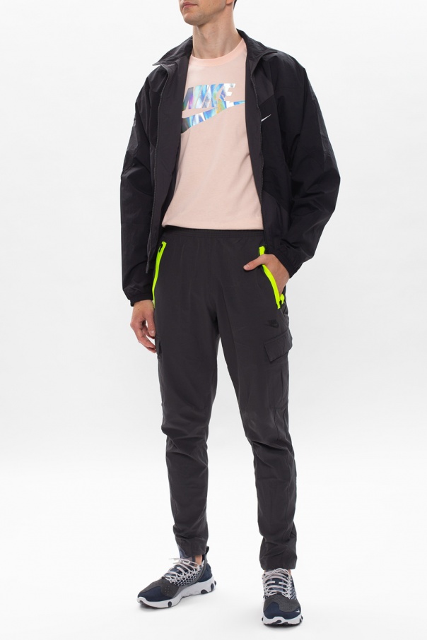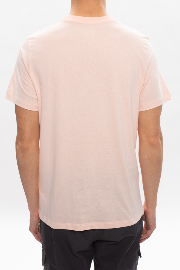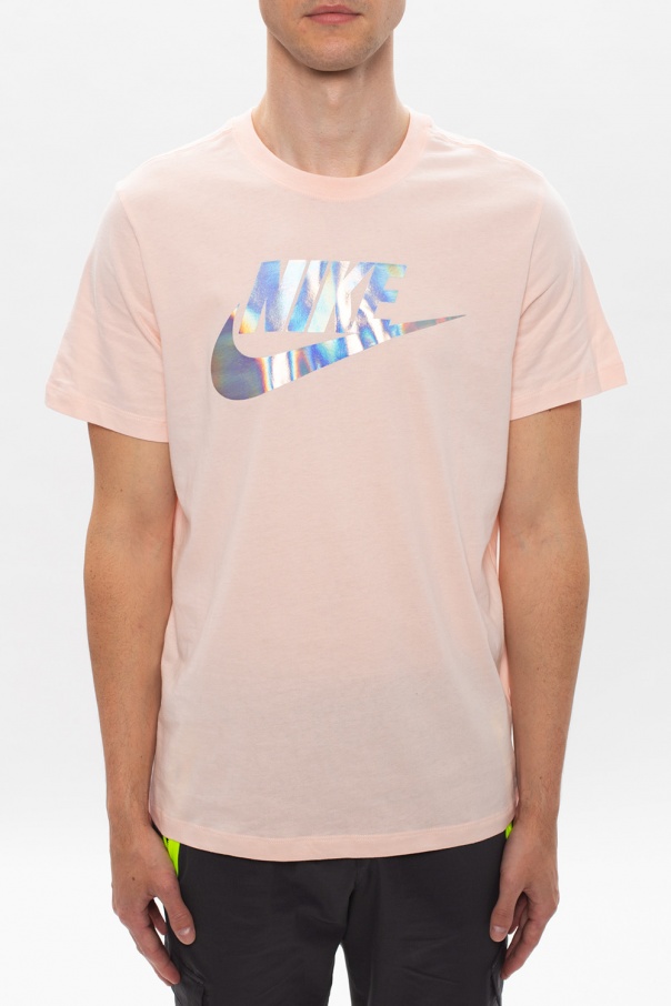 Light pink T-shirt from Nike. Made of cotton. Logo print with a holographic effect on the front. Round neck. Short sleeves.