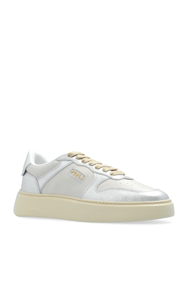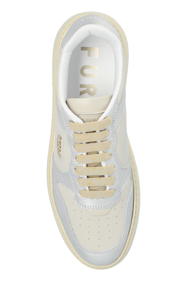 Introducing the epitome of sophistication in sportswear: the Furla Sport Sneakers, a harmonious blend of functionality and luxury. These sneakers feature a dominant creamy hue complemented by white and golden accents, encapsulating elegance with every step. Crafted from a premium mix of natural and synthetic leather, these sneakers boast superior durability thanks to their reinforced construction with double stitching. The exterior is punctuated with perforations at the fore, ensuring enhanced breathability. The inclusion of a solid, cream-colored rubber sole offers unmatched stability, making these shoes as practical as they are stylish. The aesthetic allure is elevated by the golden logo adorning the side, coupled with matching laces that add a touch of grace. Moreover, the sneaker’s tongue is adorned with a golden appliqué featuring the brand\'s name, signifying luxury. This classic low-top silhouette with a rounded front seamlessly merges traditional sportswear with modern opulence. Why Purchase This Product? Distinguished Materials: A fusion of natural leather for durability and synthetic materials for breathability. Exquisite Design: Creamy tones with white and golden accents, and a golden designer logo, offer a luxurious appearance. Enhanced Comfort: The breathable construction and solid rubber sole ensure comfort and stability. Iconic Details: Golden appliqué and matching laces add an elegant finish, making these sneakers a statement piece.