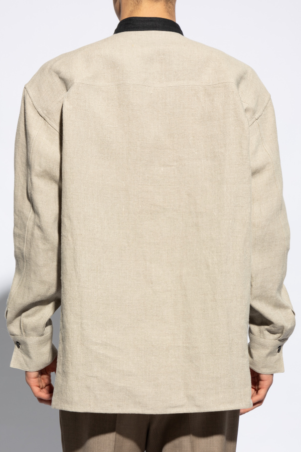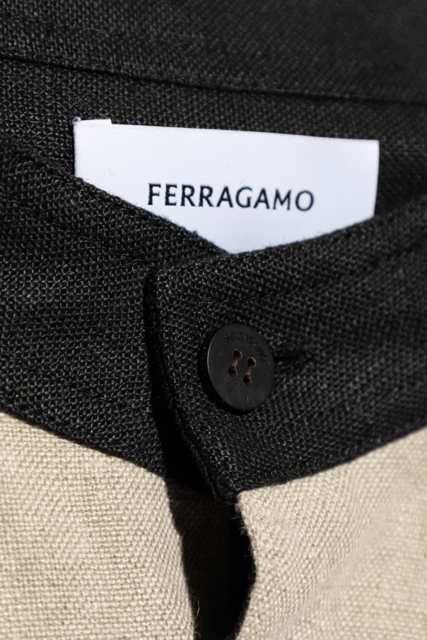 Introducing the quintessence of sophistication and comfort - the FERRAGAMO Linen Shirt. This exquisite piece, presented in a serene beige hue, embodies the timeless elegance and effortless style that the FERRAGAMO brand is renowned for. Crafted from 100% linen, this shirt is a testament to the luxurious yet breathable fabric that ensures you stay comfortable and chic in any setting. The shirt features a simple, slightly loose fit that gracefully drapes over the body, offering a flattering silhouette for all. Its long sleeves and standard length allow for versatile styling, whether worn tucked in or layered over. The round neckline adds a touch of modernity to this classic design. A discreet pocket adorns the left chest, punctuated by a subtle designer logo, signifying the mark of high-quality craftsmanship and attention to detail. Enhanced with dark button closures that contrast beautifully against the light fabric, and accented with black trim on the collar and cuffs, this shirt stands out as a piece of refined elegance. The careful curation of details, including the distinctive internal brand labeling, confirms its status as a coveted item within an exclusive collection. Why Purchase This Product? Expertly crafted from 100% premium linen for ultimate comfort and style. Elegant design with subtle, luxurious details for a distinctive look. Versatile styling options, perfect for both casual and formal occasions. Exclusive branding elements that underscore the shirt\'s designer pedigree. Unique contrast accents for a touch of sophistication.