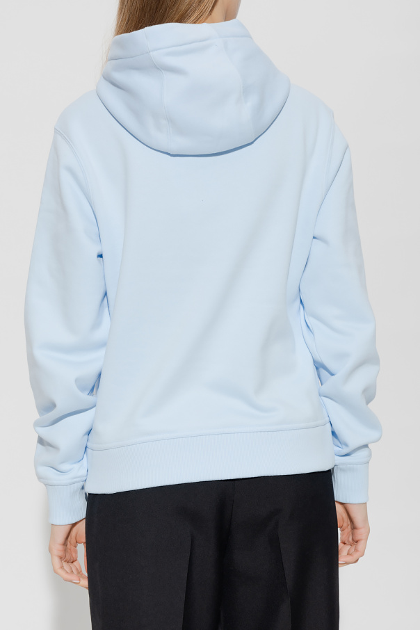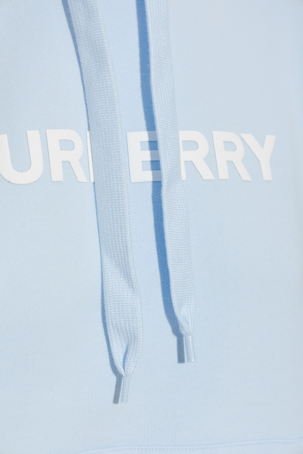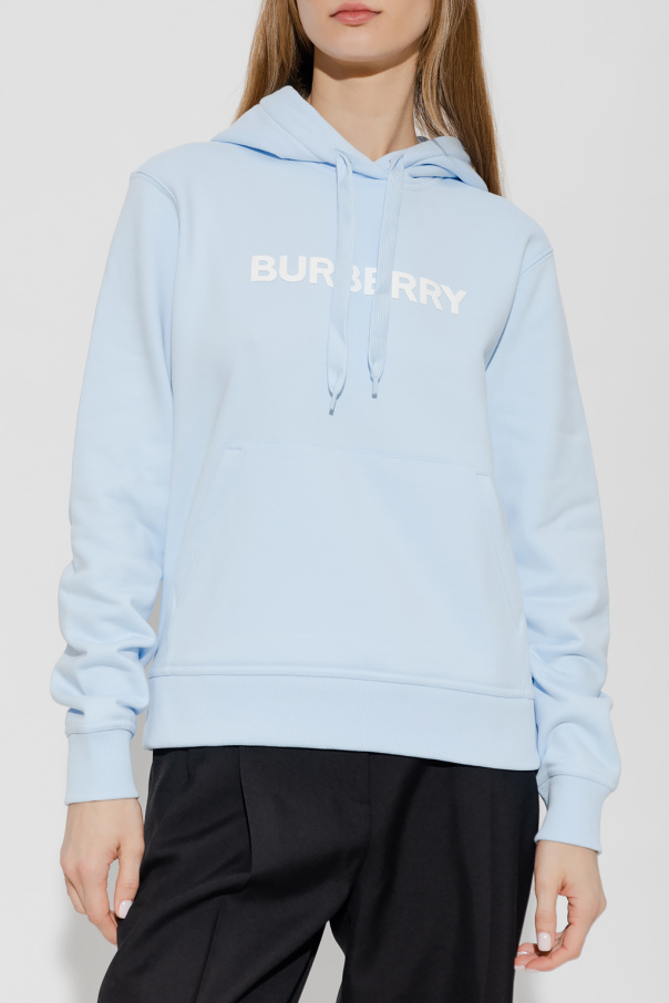 Light blue ‘Poulter’ hoodie from Burberry. Made of cotton, this garment features a drawstring hood, front pocket, white logo print and ribbed trims at the hem and cuffs.