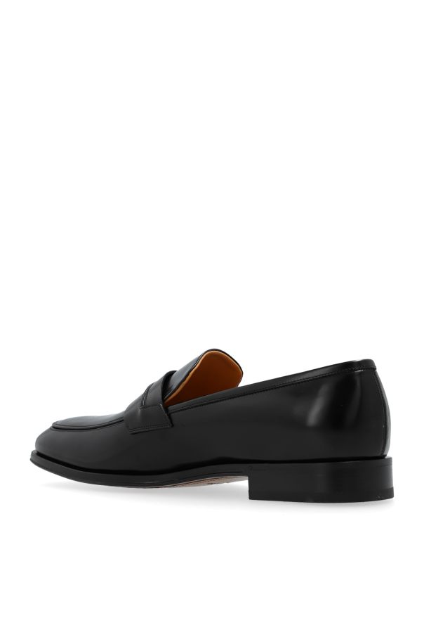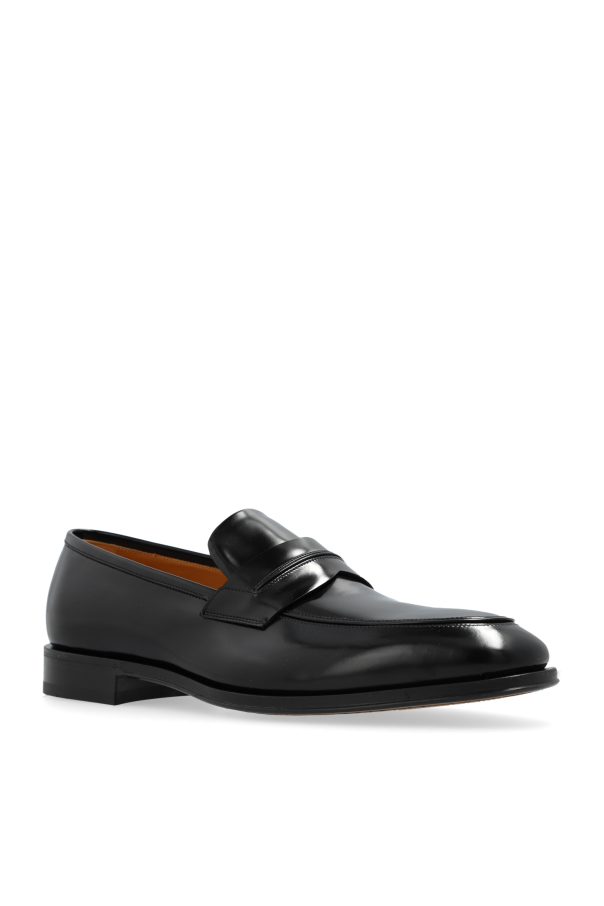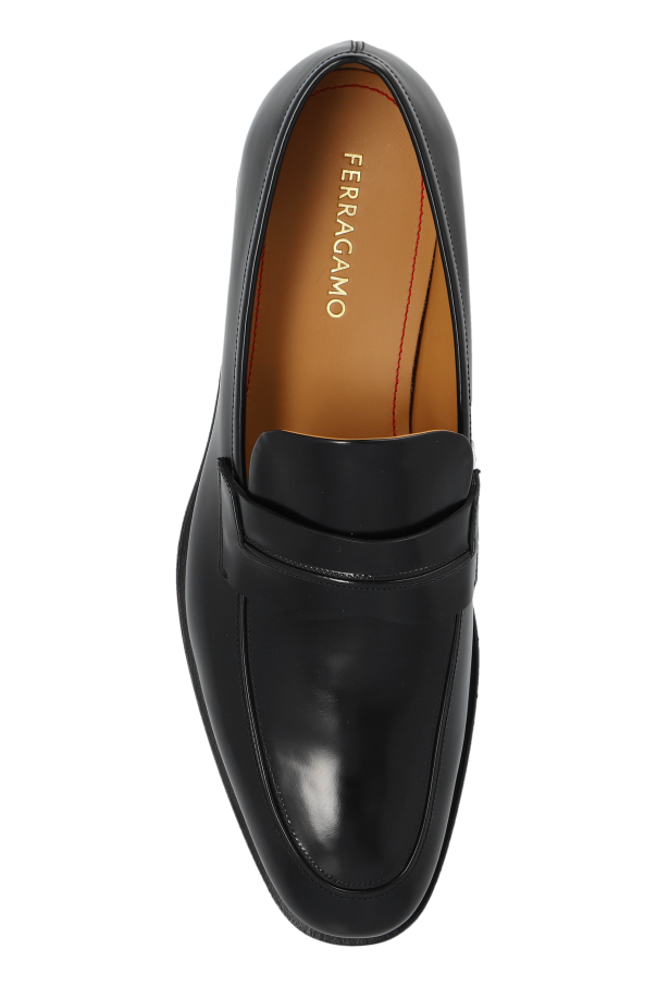 Introducing the \'Felipe\' leather moccasins, a quintessence of elegance and refinement from the esteemed house of FERRAGAMO. Crafted with meticulous attention to detail, these black moccasins are a testament to timeless style and luxury. The high-shine, possibly lacquered or polished leather, mirrors sophistication, while the classic rounded shape and low-cut design signify the traditional essence of moccasins. The signature penny strap adorns the upper, adding a distinctive flair that sets these shoes apart. Coupled with a durable sole, likely crafted from premium leather or rubber, these moccasins are designed for both, resilience and formal elegance. The interior boasts a contrasting, lighter shade of leather, enhancing the exclusivity and providing a subtle touch of luxury. Notably, this exquisite pair features an extra-wide insole, ensuring unparalleled comfort without compromising on style. The internal label bearing the FERRAGAMO name underscores the authenticity and high standards of craftsmanship expected from such a renowned designer. Why Purchase the \'Felipe\' Leather Moccasins? Timeless elegance with a high-shine, polished exterior Exquisite craftsmanship from the distinguished FERRAGAMO Distinctive penny strap detail for an elevated style Durable and formal-appropriate sole Extra-wide insole for superior comfort Interior contrast enhancing the shoe\'s exclusivity
