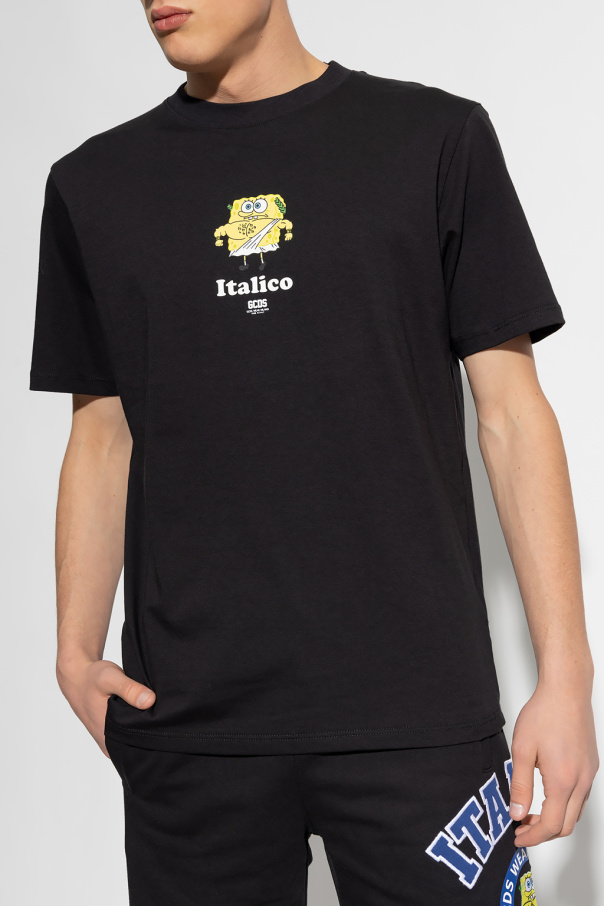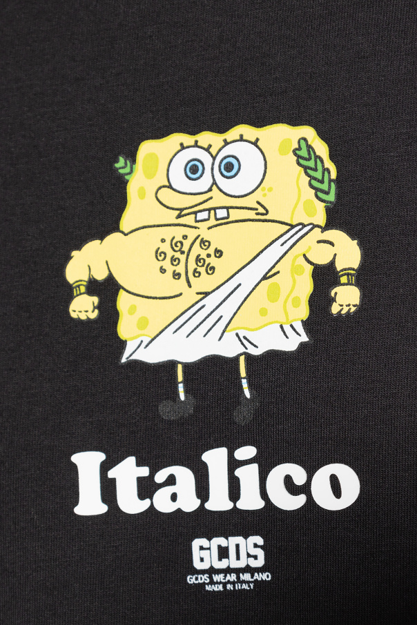 Black T-shirt from GCDS x SpongeBob SquarePants™. Made of cotton, this short sleeve design features a multicolored print, logo detail and ribbed crew neck.