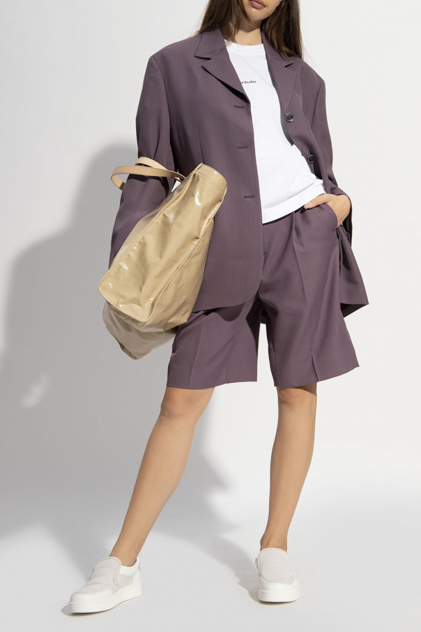 White and light grey slip-on sneakers from Acne Studios. Crafted from calf leather, this design features decorative stitching details, silver-tone logo printed at the back and a cream rubber sole.