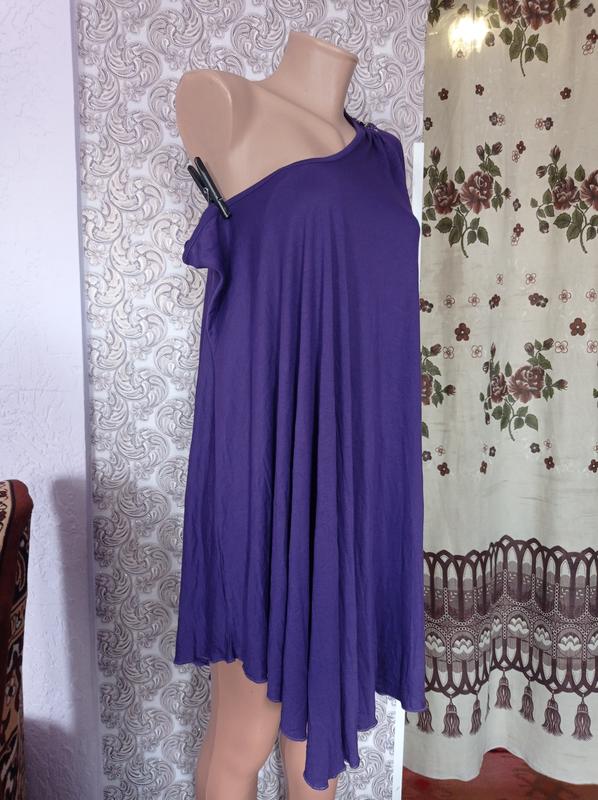 Нарядная туника фиолетового цвета на одно плечо. Рукав расклешенный,на плече с красивыми камнями.Стиль оверсайз.