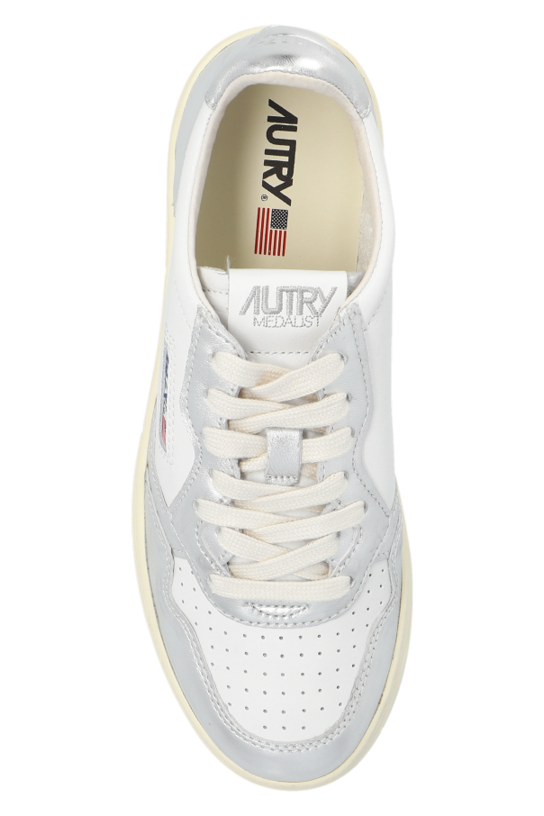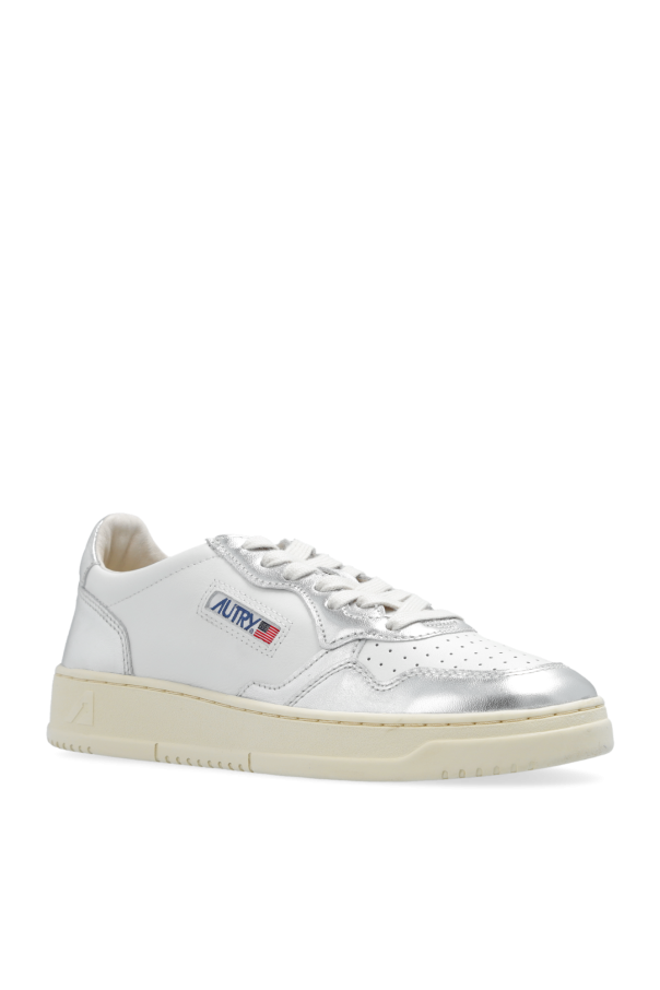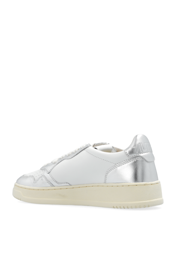 White and silver-tone ‘Medalist’ sneakers from Autry. Made from leather, this lace-up model sits on a cream rubber sole and showcases the brand\'s logo and a perforated front.
