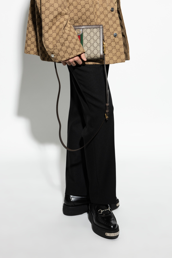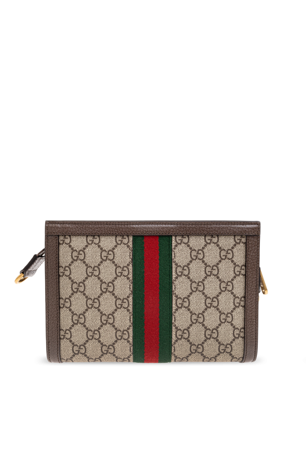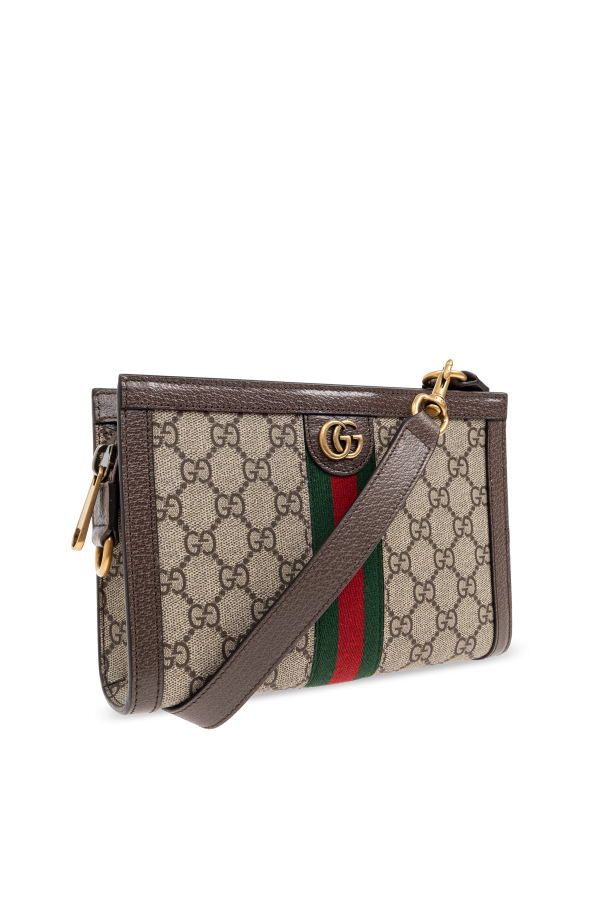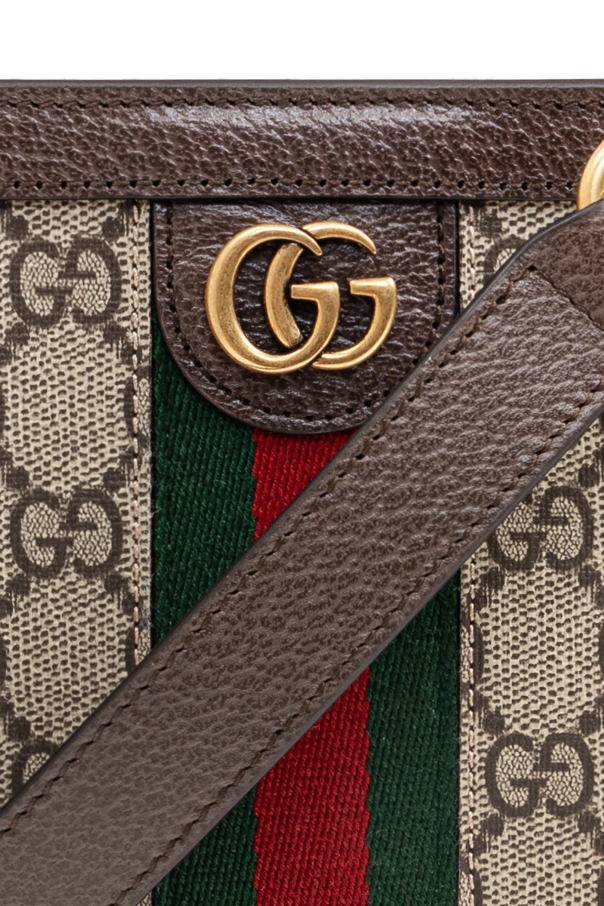 Discover the epitome of luxury with the Ophidia Super Mini Shoulder Bag by Gucci, a masterpiece that seamlessly blends timeless elegance with contemporary flair. Crafted from premium leather and canvas, this exquisite bag features the brand\'s iconic monogram in a sophisticated beige hue, accentuated by a distinguished red and green stripe. The addition of sumptuous leather detailing and a gold-toned metal logo emblazoned on the front exemplifies its exclusivity. Securely fastened with a zipper closure, the bag\'s interior is thoughtfully designed with a serene-toned lining, featuring a main compartment and a zippered pocket for enhanced functionality. Adorned with an adjustable shoulder strap, this bag offers unparalleled comfort and versatility, making it an ideal companion for both everyday elegance and special occasions. Why Choose This Product? Exquisite design by Alessandro Michele, revolutionizing the brand\'s luxurious aesthetic. Meticulously crafted from the finest materials, ensuring durability and style. Distinctive monogram pattern with signature stripe design. Adjustable strap for customized comfort. Secure zip closure with interior organization features.