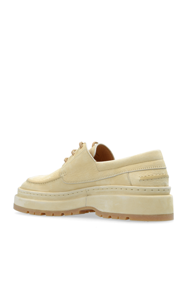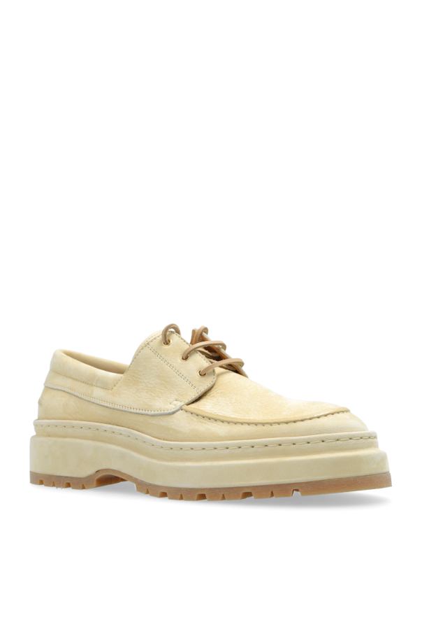 Beige ‘Les Bateau Pavane’ shoes from Jacquemus. Made from leather, this lace-up model sits on a beige rubber sole.